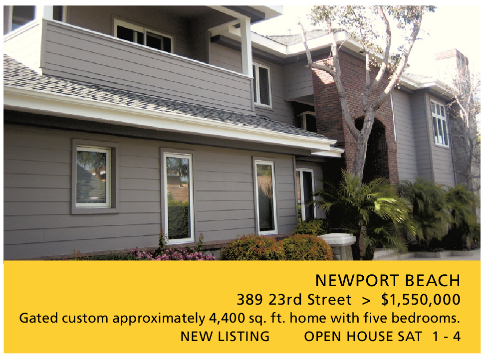 NEWPORT BEACH 389 23rd Street > $1,550,000 Gated custom approximately 4,400 sq. ft. home with five bedrooms.
