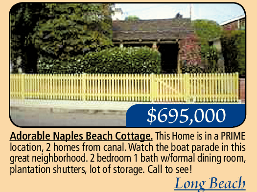 Adorable Naples Beach Cottage. This Home is in a PRIME location, 2 homes from canal. Watch the boat parade in this great neighborhood. 2 bedroom 1 bath w/formal dining room, plantation shutters, lot of storage. Call to see!