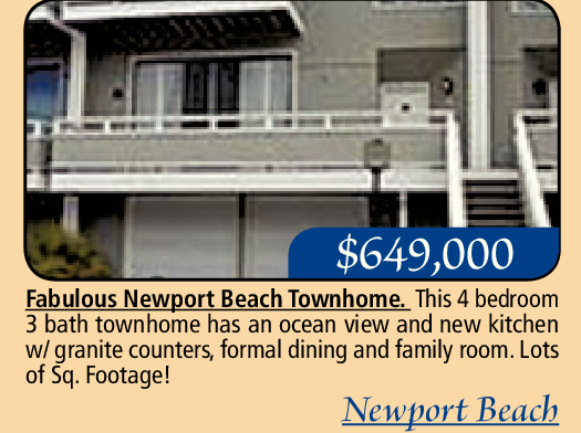 Fabulous Newport Beach Townhome. This 4 bedroom 3 bath townhome has an ocean view and new kitchen w/ granite counters, formal dining and family room. Lots of Sq. Footage!