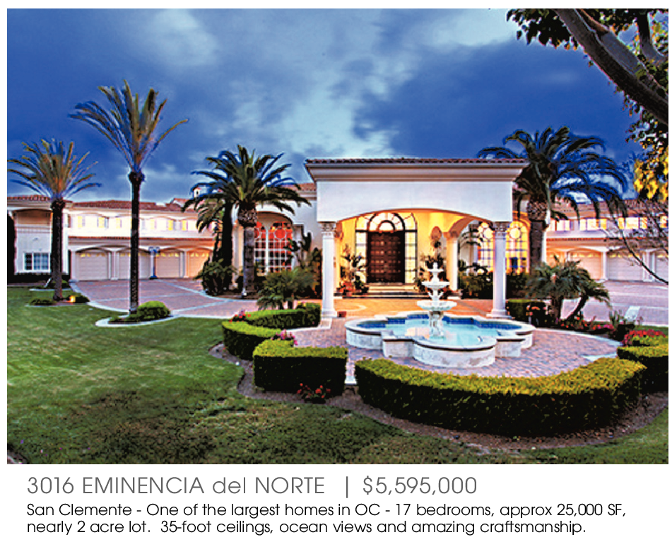 3016 EMINENCIA del NORTE | $5,595,000 San Clemente - One of the largest homes in OC - 17 bedrooms, approx 25,000 SF, nearly 2 acre lot. 35-foot ceilings, ocean views and amazing craftsmanship.