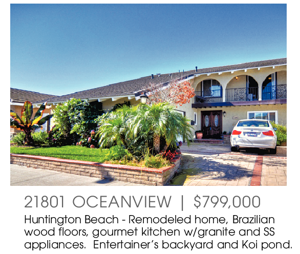 21801 OCEANVIEW | $799,000 Huntington Beach - Remodeled home, Brazilian wood floors, gourmet kitchen w/granite and SS appliances. Entertainer’s backyard and Koi pond.