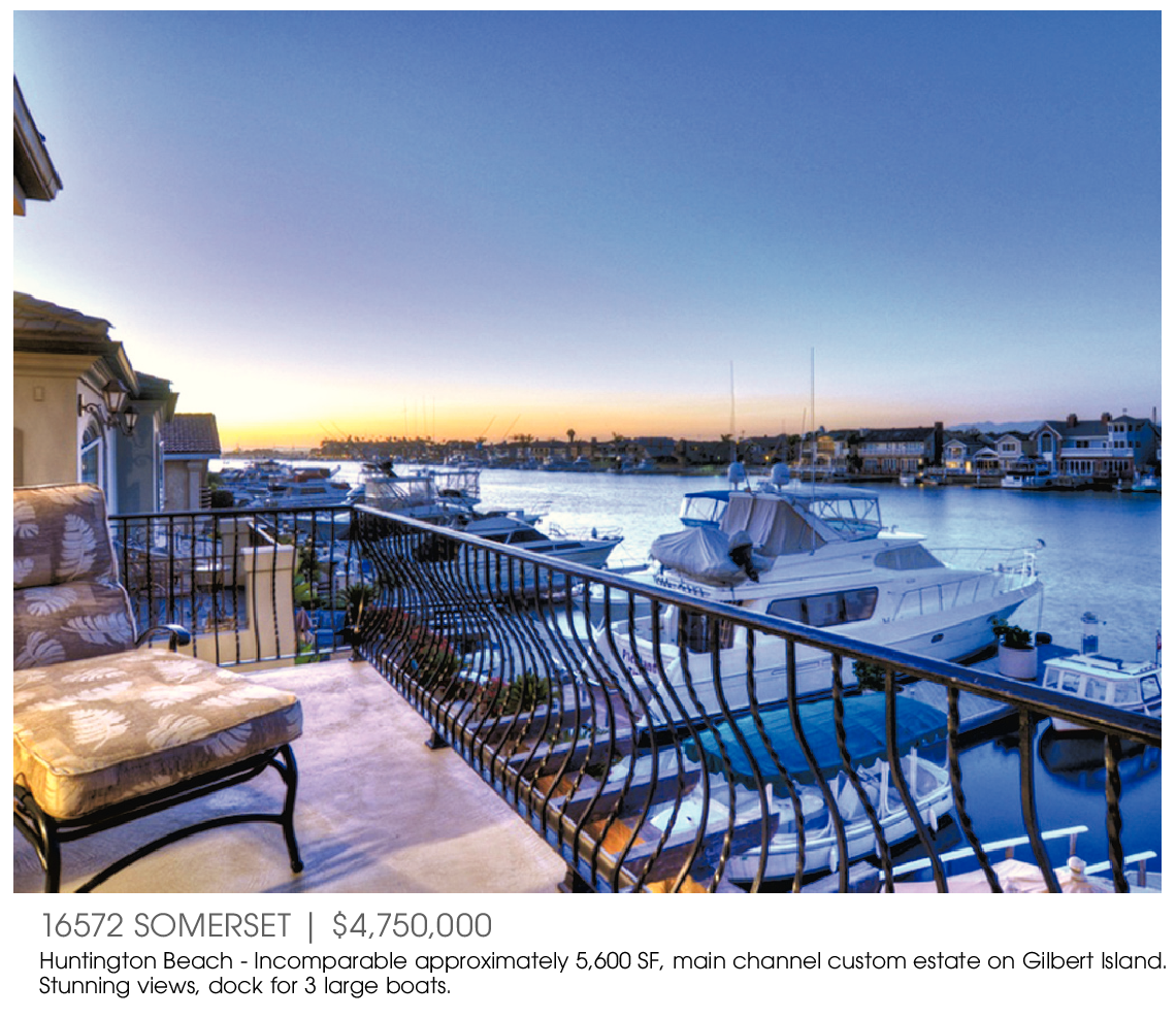 16572 SOMERSET | $4,750,000 Huntington Beach - Incomparable approximately 5,600 SF, main channel custom estate on Gilbert Island. Stunning views, dock for 3 large boats.