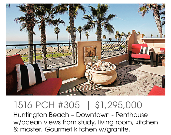 1516 PCH #305 | $1,295,000 Huntington Beach – Downtown - Penthouse w/ocean views from study, living room, kitchen & master. Gourmet kitchen w/granite.