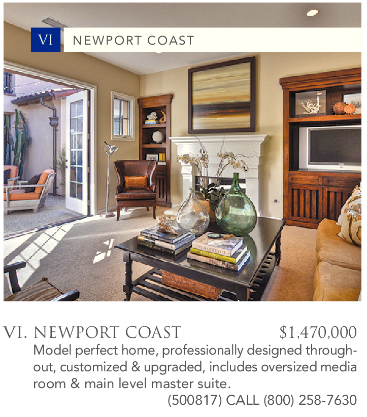 VI. NEWPORT COAST $1,470,000 Model perfect home, professionally designed throughout, customized & upgraded, includes oversized media room & main level master suite.