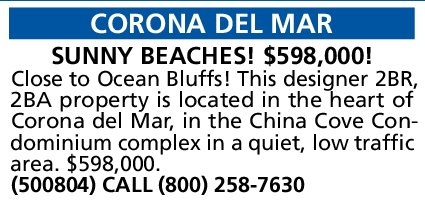 CORONA DEL MAR SUNNY BEACHES! $598,000!