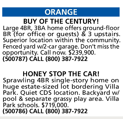 Sprawling 4BR single-story home on huge estate-sized lot bordering Villa Park. Quiet CDS location. Backyard w/ pool & separate grassy play area. Villa Park schools. $719,000.