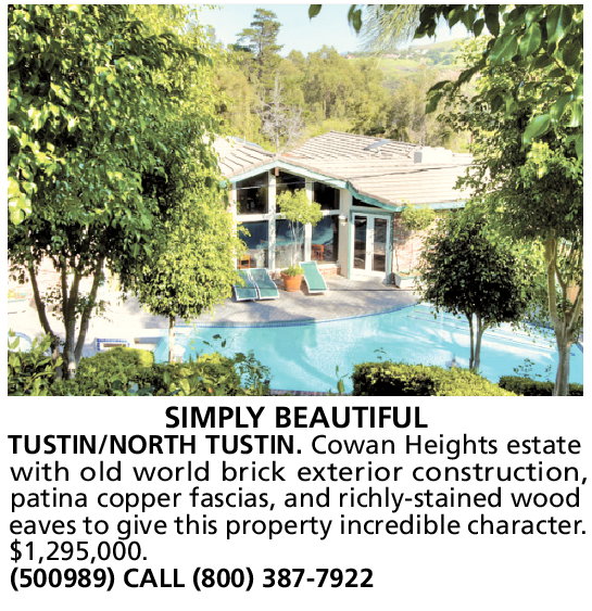 SIMPLY BEAUTIFUL TUSTIN/NORTH TUSTIN. Cowan Heights estate with old world brick exterior construction, patina copper fascias, and richly-stained wood eaves to give this property incredible character. $1,295,000.