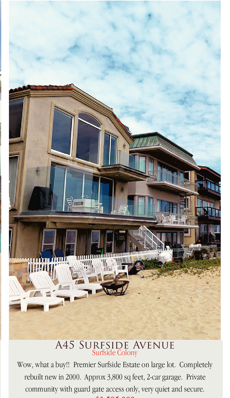 A45 Surfside Avenue Surfside Colony Wow, what a buy!! Premier Surfside Estate on large lot. Completely rebuilt new in 2000. Approx 3,800 sq feet, 2-car garage. Private community with guard gate access only, very quiet and secure.