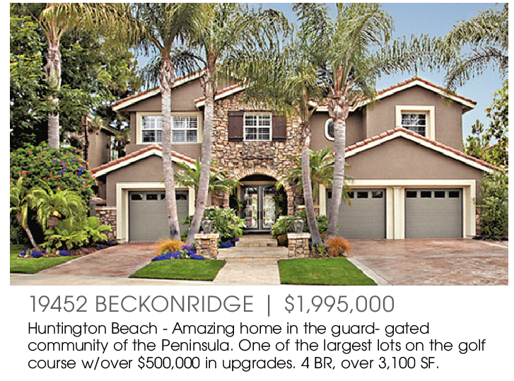 19452 BECKONRIDGE | $1,995,000 Huntington Beach - Amazing home in the guard- gated community of the Peninsula. One of the largest lots on the golf course w/over $500,000 in upgrades. 4 BR, over 3,100 SF.
