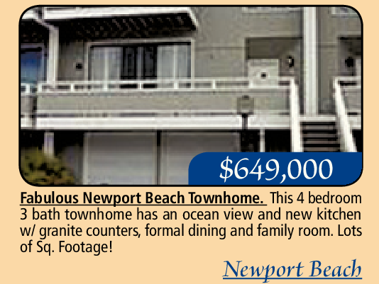 Fabulous Newport Beach Townhome. This 4 bedroom 3 bath townhome has an ocean view and new kitchen w/ granite counters, formal dining and family room. Lots of Sq. Footage!