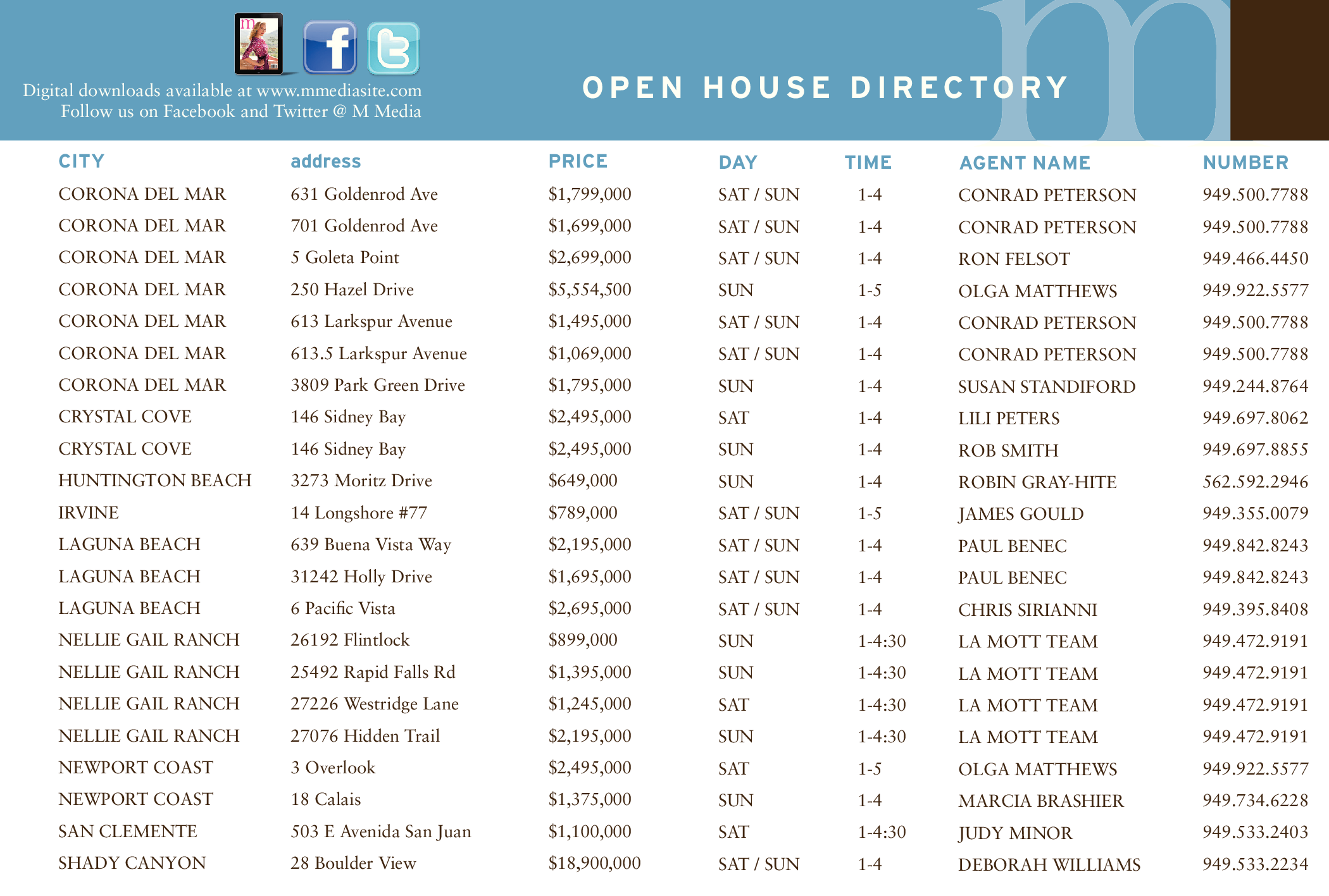 CITY CORONA DEL MAR CORONA DEL MAR CORONA DEL MAR CORONA DEL MAR CORONA DEL MAR CORONA DEL MAR CORONA DEL MAR CRYSTAL COVE CRYSTAL COVE HUNTINGTON BEACH IRVINE LAGUNA BEACH LAGUNA BEACH LAGUNA BEACH NELLIE GAIL RANCH NELLIE GAIL RANCH NELLIE GAIL RANCH NELLIE GAIL RANCH NEWPORT COAST NEWPORT COAST SAN CLEMENTE SHADY CANYON