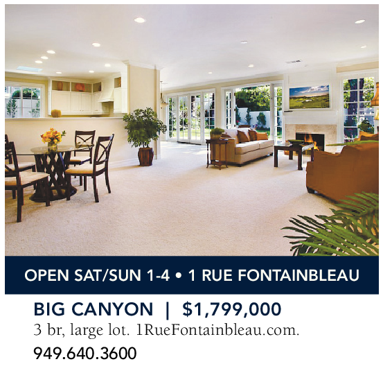 BIG CANYON | $1,799,000 3 br, large lot. 1RueFontainbleau.com. 949.640.3600