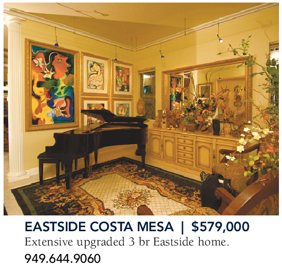 EASTSIDE COSTA MESA | $579,000 Extensive upgraded 3 br Eastside home. 949.644.9060