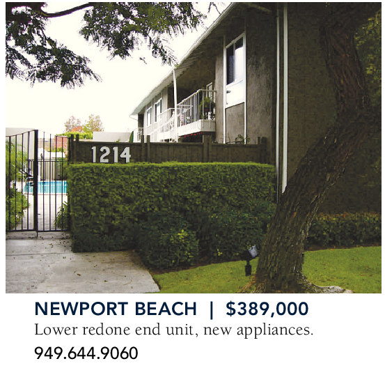 NEWPORT BEACH | $389,000 Lower redone end unit, new appliances. 949.644.9060