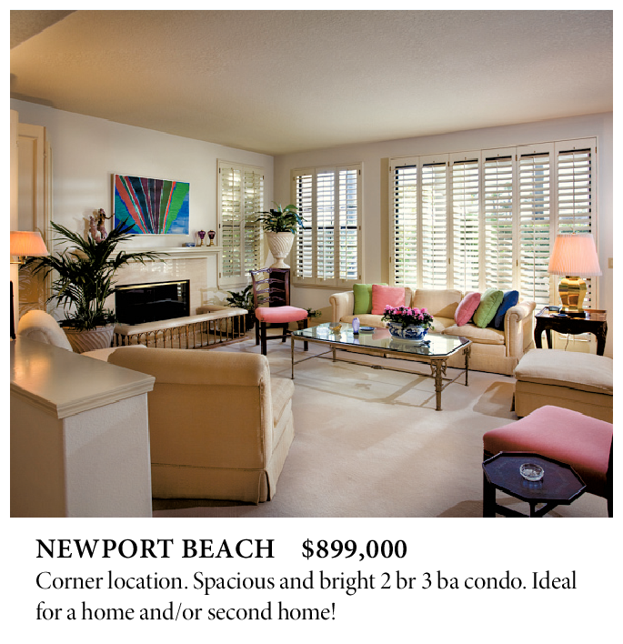 NEWPORT BEACH $899,000 Corner location. Spacious and bright 2 br 3 ba condo. Ideal for a home and/or second home!