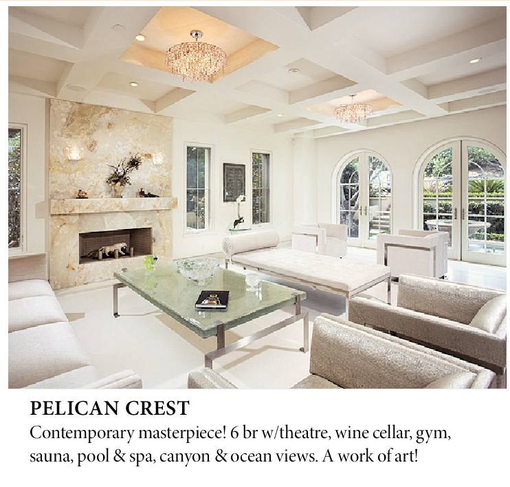 PELICAN CREST Contemporary masterpiece! 6 br w/theatre, wine cellar, gym, sauna, pool & spa, canyon & ocean views. A work of art!