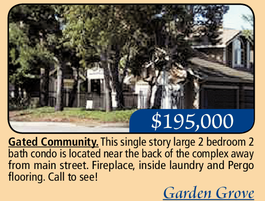 Gated Community. This single story large 2 bedroom 2 bath condo is located near the back of the complex away from main street. Fireplace, inside laundry and Pergo flooring. Call to see!