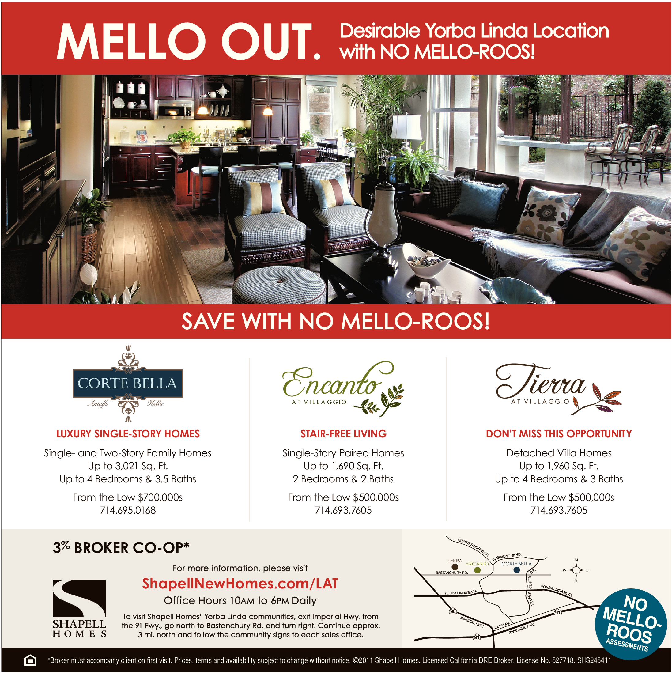 *Broker must accompany client on first visit. Prices, terms and availability subject to change without notice. ©2011 Shapell Homes. Licensed California DRE Broker, License No. 527718. SHS245411