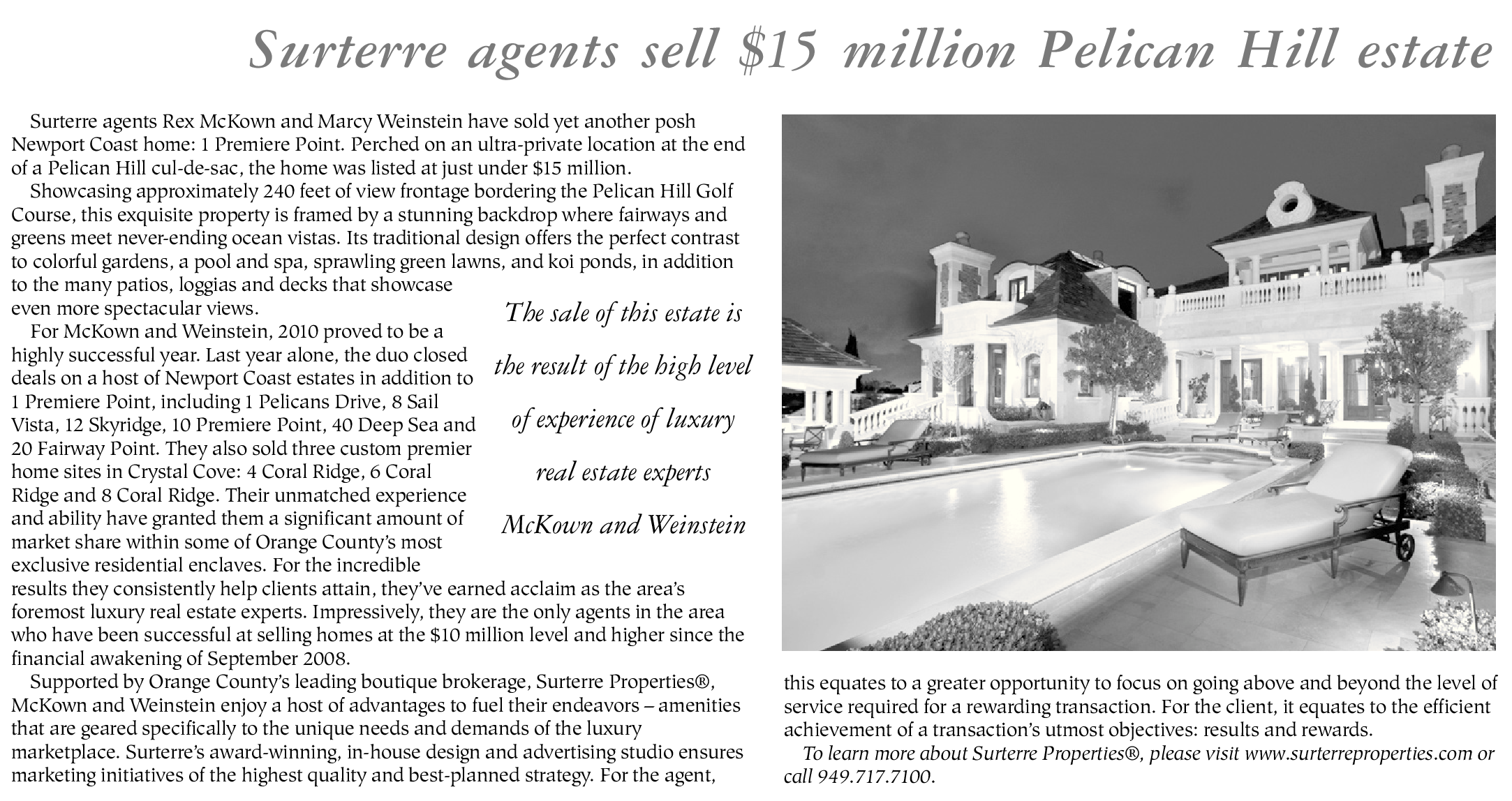 Surterre agents sell $15 million Pelican Hill estate