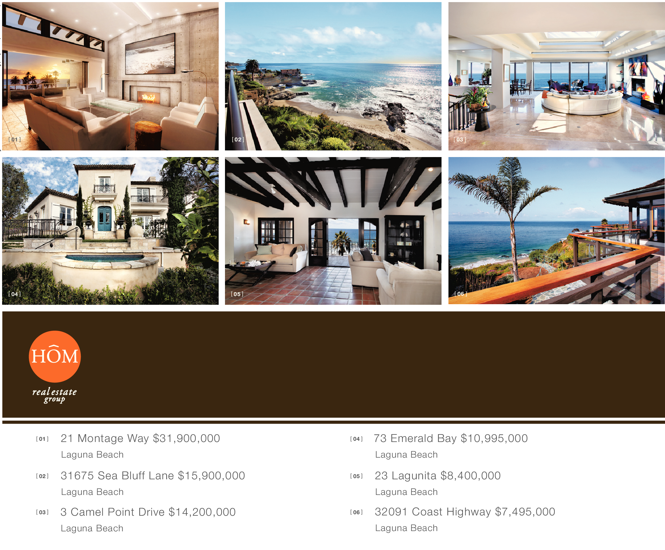 74 [ 01 ] [ 02 ] [ 03 ] [ 04 ] [ 05 ] [ 06 ] [ 01 ] [ 02 ] [ 03 ] 21 Montage Way $31,900,000 Laguna Beach 31675 Sea Bluff Lane $15,900,000 Laguna Beach 3 Camel Point Drive $14,200,000 Laguna Beach 73 Emerald Bay $10,995,000 Laguna Beach [ 04 ] [ 05 ] [ 06 ] 23 Lagunita $8,400,000 Laguna Beach 32091 Coast Highway $7,495,000 Laguna Beach