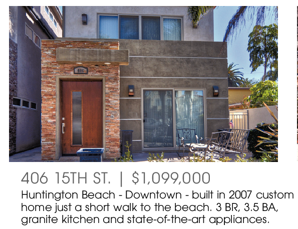 406 15TH ST. | $1,099,000 Huntington Beach - Downtown - built in 2007 custom home just a short walk to the beach. 3 BR, 3.5 BA, granite kitchen and state-of-the-art appliances.