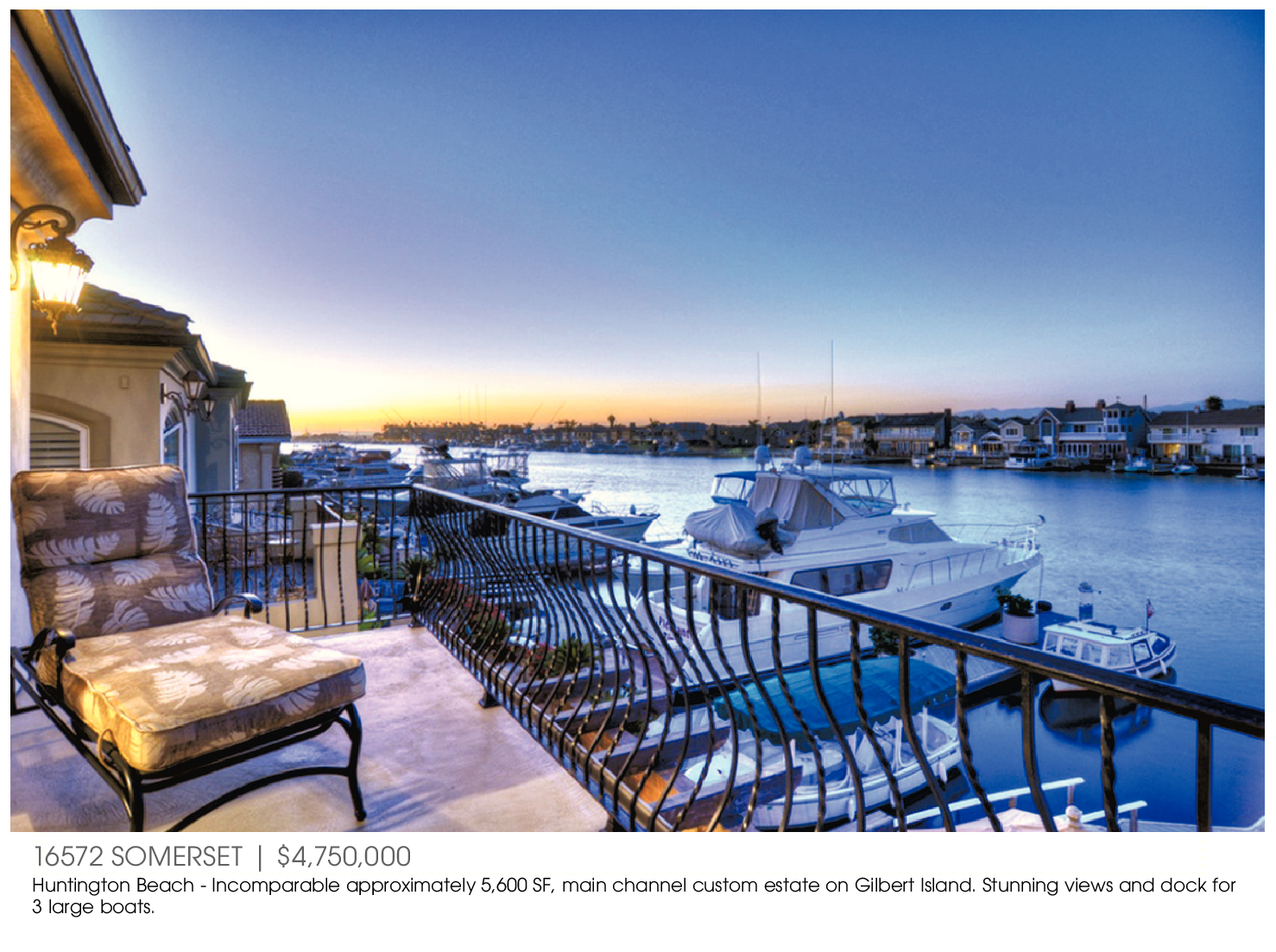 16572 SOMERSET | $4,750,000 Huntington Beach - Incomparable approximately 5,600 SF, main channel custom estate on Gilbert Island. Stunning views and dock for 3 large boats.