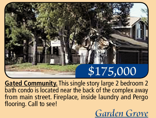 Gated Community. This single story large 2 bedroom 2 bath condo is located near the back of the complex away from main street. Fireplace, inside laundry and Pergo flooring. Call to see!