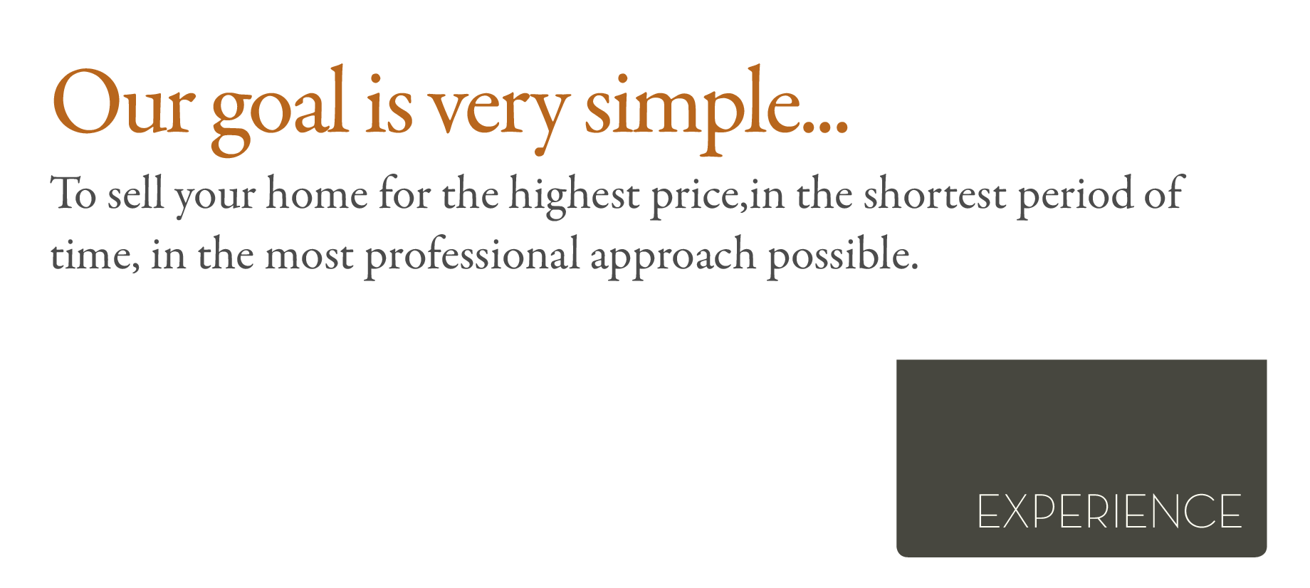 To sell your home for the highest price,in the shortest period of time, in the most professional approach possible.