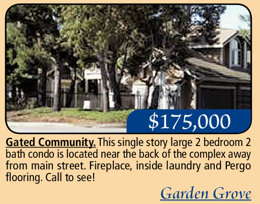 Gated Community. This single story large 2 bedroom 2 bath condo is located near the back of the complex away from main street. Fireplace, inside laundry and Pergo flooring. Call to see!
