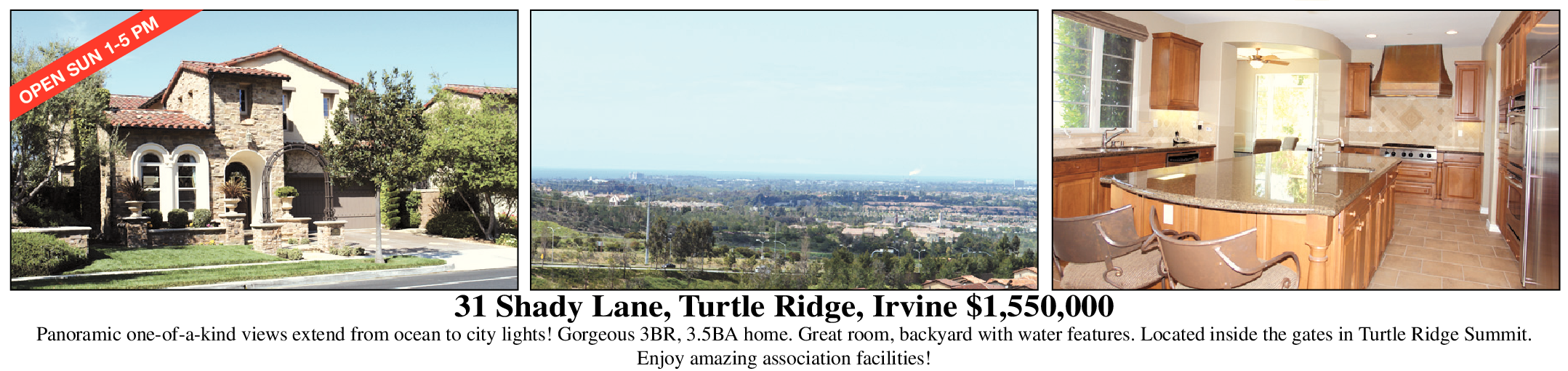 31 Shady Lane, Turtle Ridge, Irvine $1,550,000