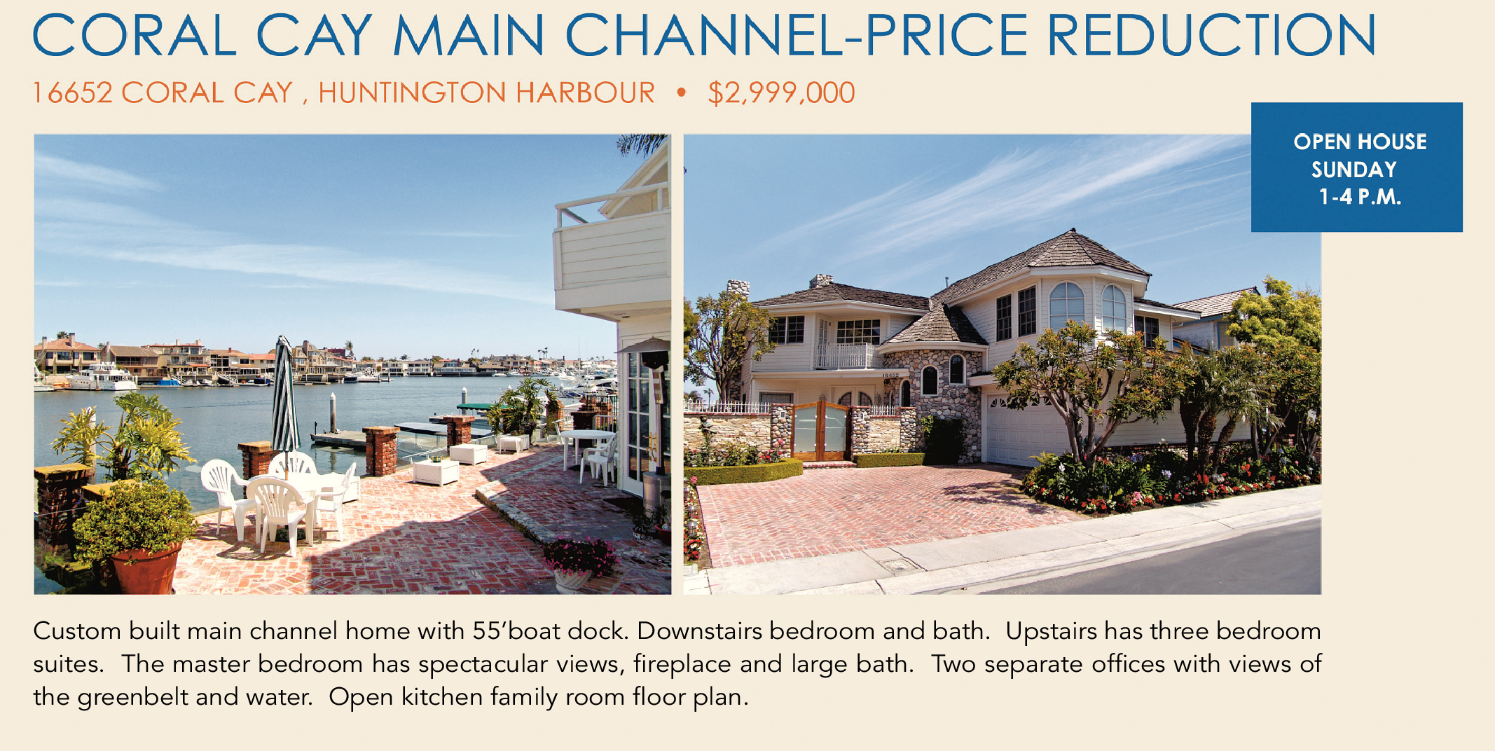 Custom built main channel home with 55’boat dock. Downstairs bedroom and bath. Upstairs has three bedroom suites. The master bedroom has spectacular views, fireplace and large bath. Two separate offices with views of the greenbelt and water. Open kitchen family room floor plan.