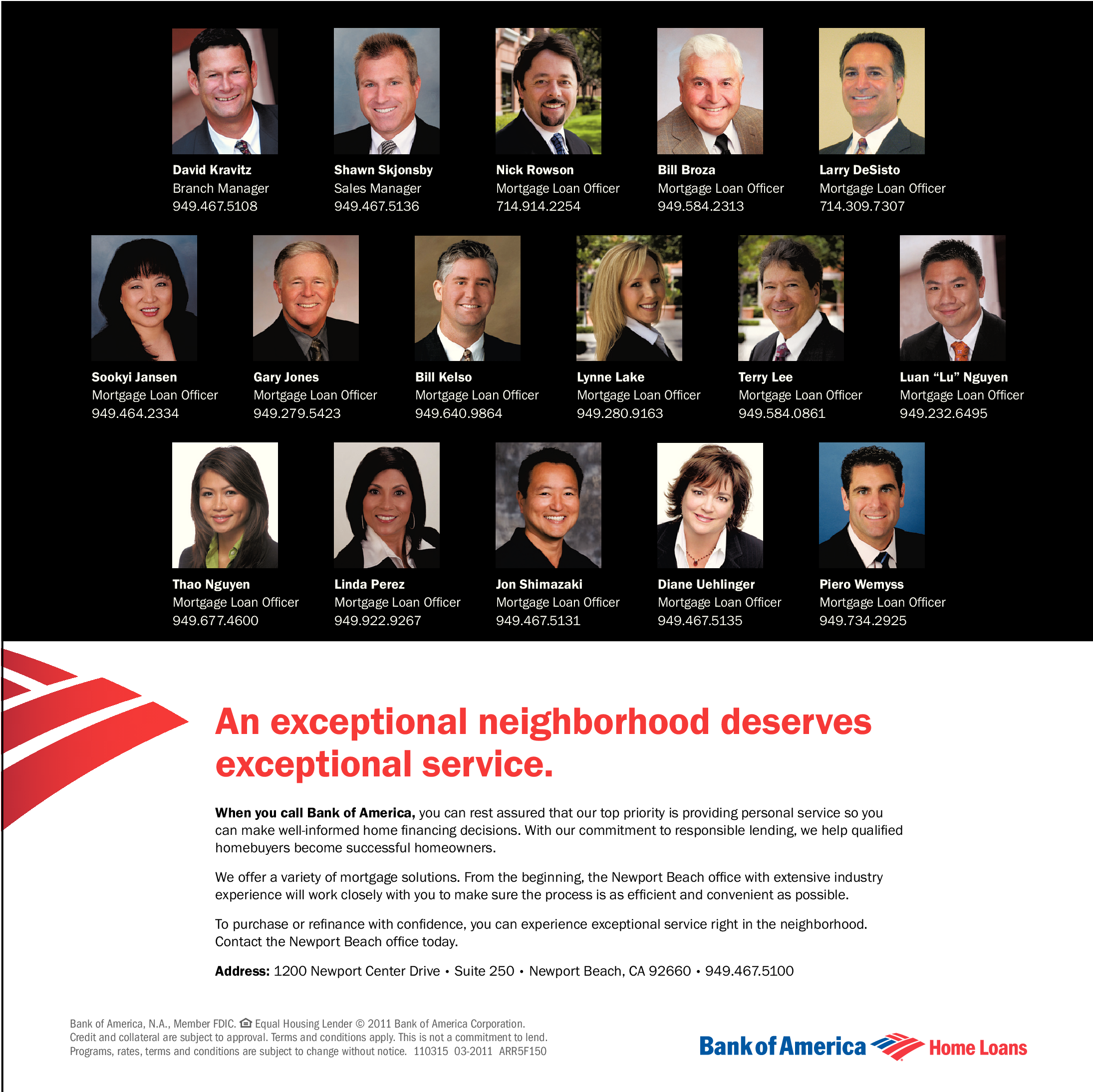 Bank of America, N.A., Member FDIC. Equal Housing Lender © 2011 Bank of America Corporation. Credit and collateral are subject to approval. Terms and conditions apply. This is not a commitment to lend. Programs, rates, terms and conditions are subject to change without notice. 110315 03-2011 ARR5F150
