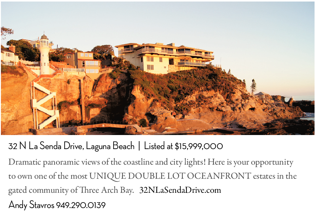 Dramatic panoramic views of the coastline and city lights! Here is your opportunity to own one of the most UNIQUE DOUBLE LOT OCEANFRONT estates in the gated community of Three Arch Bay. 32NLaSendaDrive.com Andy Stavros 949.290.0139