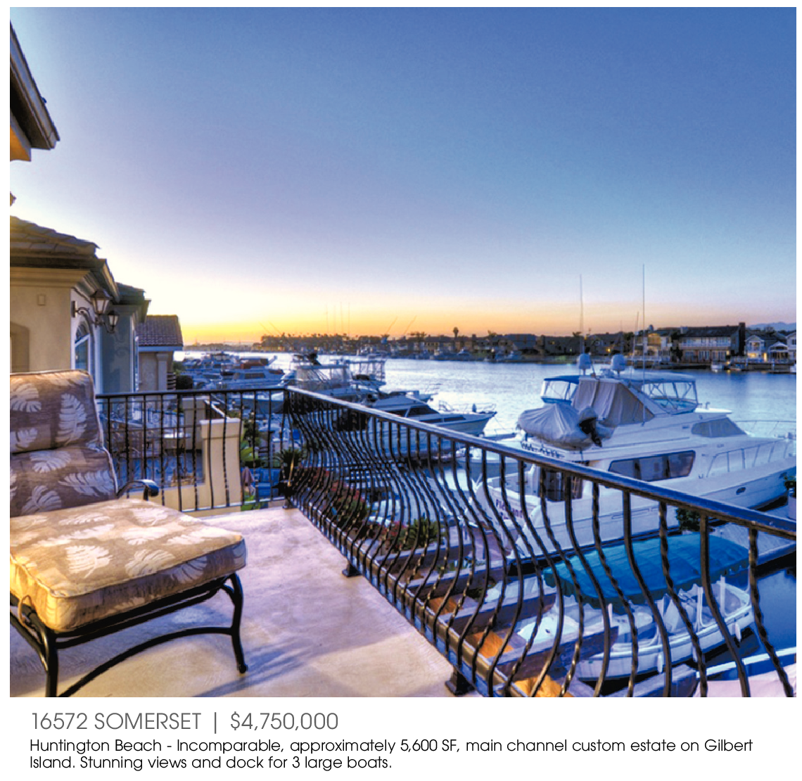 16572 SOMERSET | $4,750,000 Huntington Beach - Incomparable, approximately 5,600 SF, main channel custom estate on Gilbert Island. Stunning views and dock for 3 large boats.