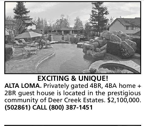 ALTA LOMA. Privately gated 4BR, 4BA home + 2BR guest house is located in the prestigious community of Deer Creek Estates. $2,100,000. (502861) CALL (800) 387-1451