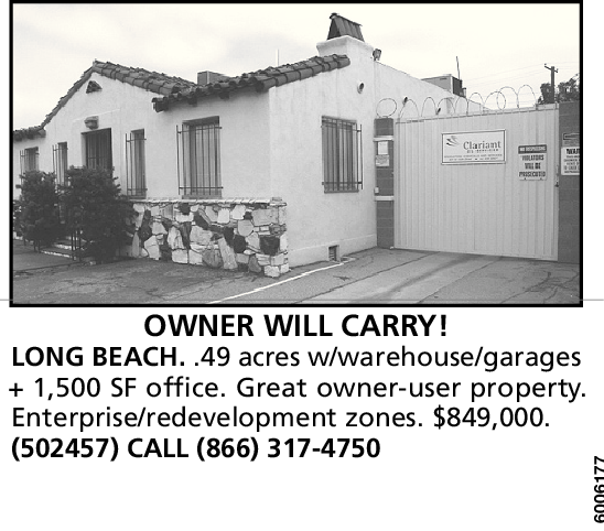 LONG BEACH. .49 acres w/warehouse/garages + 1,500 SF office. Great owner-user property.