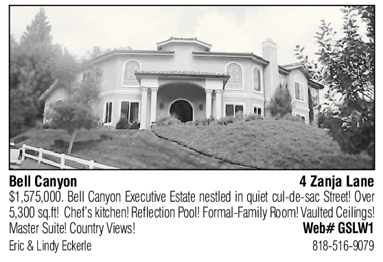 Bell Canyon 4 Zanja Lane $1,575,000. Bell Canyon Executive Estate nestled in quiet cul-de-sac Street! Over 5,300 sq.ft! Chef’s kitchen! Reflection Pool! Formal-Family Room! Vaulted Ceilings!