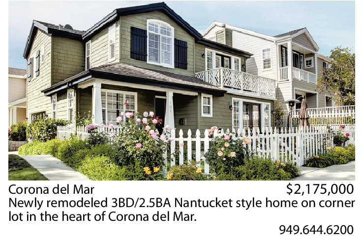 Corona del Mar $2,175,000 Newly remodeled 3BD/2.5BA Nantucket style home on corner lot in the heart of Corona del Mar.