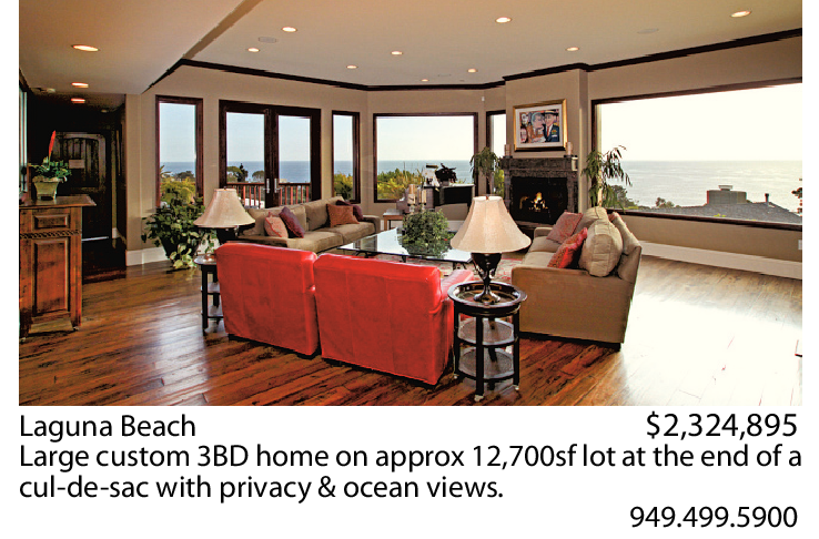Laguna Beach $2,324,895 Large custom 3BD home on approx 12,700sf lot at the end of a cul-de-sac with privacy & ocean views.