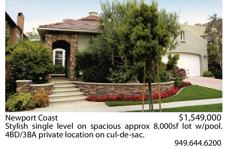 Newport Coast $1,549,000 Stylish single level on spacious approx 8,000sf lot w/pool. 4BD/3BA private location on cul-de-sac.