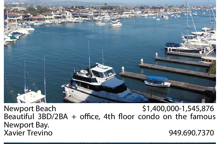 Newport Beach $1,400,000-1,545,876 Beautiful 3BD/2BA + office, 4th floor condo on the famous Newport Bay. Xavier Trevino 949.690.7370