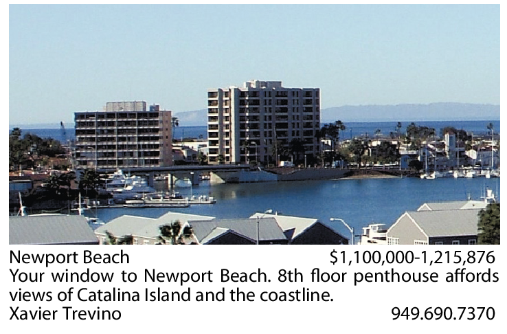 Newport Beach $1,100,000-1,215,876 Your window to Newport Beach. 8th floor penthouse affords views of Catalina Island and the coastline. Xavier Trevino 949.690.7370