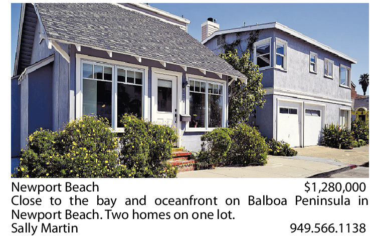 Newport Beach $1,280,000 Close to the bay and oceanfront on Balboa Peninsula in Newport Beach. Two homes on one lot. Sally Martin 949.566.1138