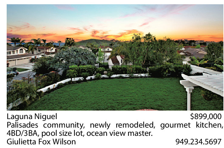 Laguna Niguel $899,000 Palisades community, newly remodeled, gourmet kitchen, 4BD/3BA, pool size lot, ocean view master. Giulietta Fox Wilson 949.234.5697