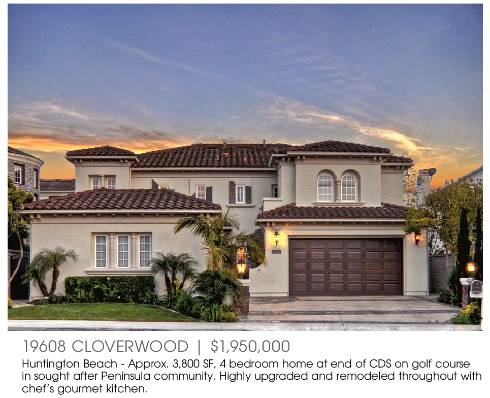 19608 CLOVERWOOD | $1,950,000 Huntington Beach - Approx. 3,800 SF, 4 bedroom home at end of CDS on golf course in sought after Peninsula community. Highly upgraded and remodeled throughout with chef’s gourmet kitchen.
