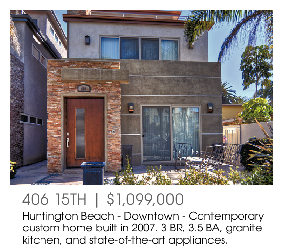 406 15TH | $1,099,000 Huntington Beach - Downtown - Contemporary custom home built in 2007. 3 BR, 3.5 BA, granite kitchen, and state-of-the-art appliances.