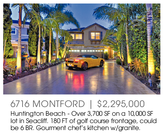 6716 MONTFORD | $2,295,000 Huntington Beach - Over 3,700 SF on a 10,000 SF lot in Seacliff. 180 FT of golf course frontage, could be 6 BR. Gourment chef’s kitchen w/granite.
