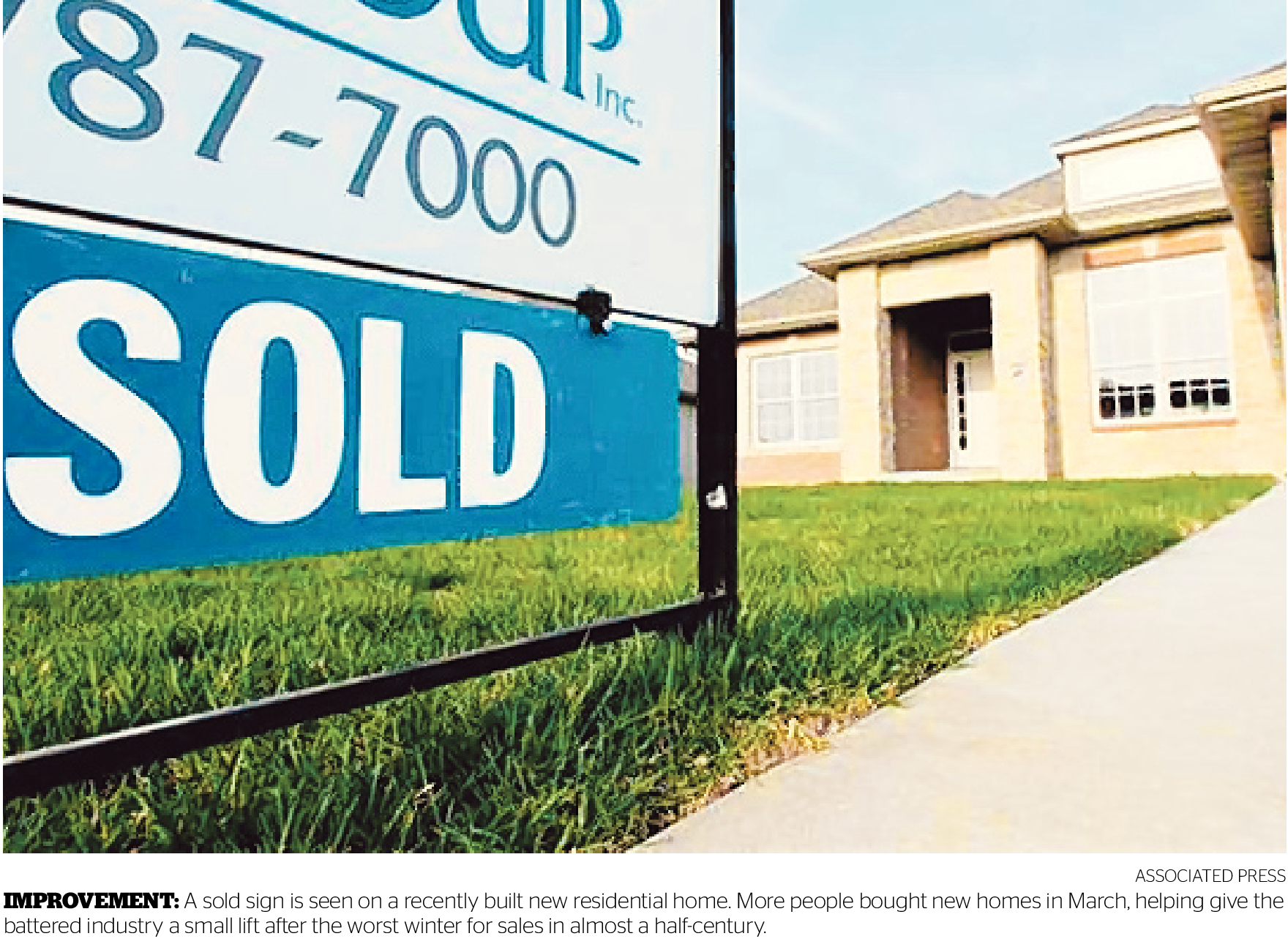 Sales of new homes rose 11.1% in March from February, the Commerce Department said Monday, marking a mild improvement from the worst-ever showing as the effect of winter storms and an expiring California tax credit wore off.