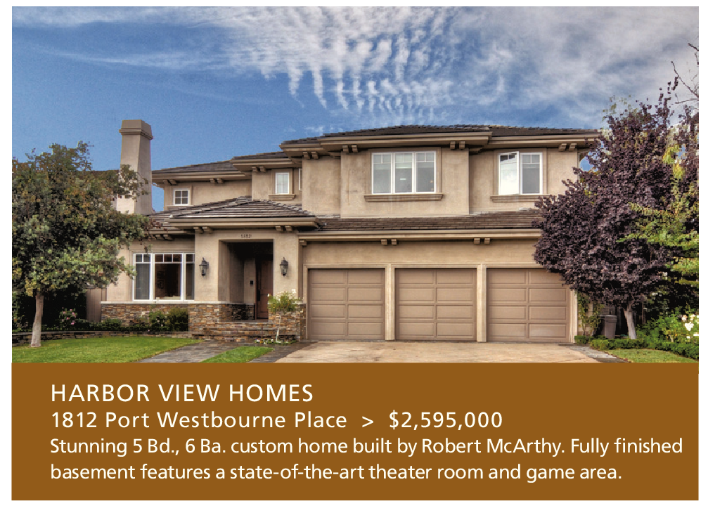 HARBOR VIEW HOMES 1812 Port Westbourne Place > $2,595,000 Stunning5Bd.,6Ba.customhomebuiltbyRobertMcArthy.Fullyfinished basementfeaturesastate-of-the-arttheaterroomandgamearea.
