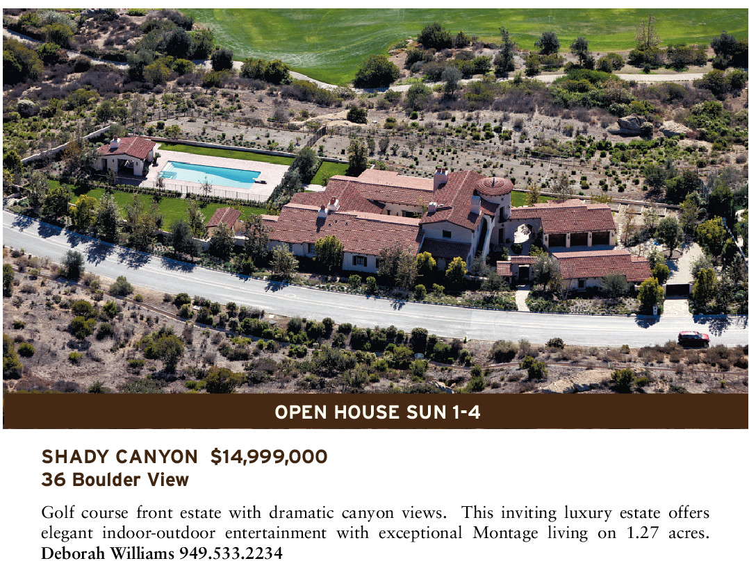 Golf course front estate with dramatic canyon views. This inviting luxury estate offers elegant indoor-outdoor entertainment with exceptional Montage living on 1.27 acres. Deborah Williams 949.533.2234
